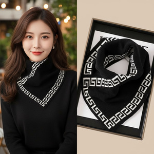 秋冬千鸟格三角巾时尚围脖护颈百搭针织脖套懒人套头气质网红围巾
