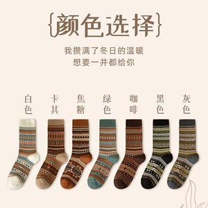 秋冬新款袜子女中筒复古民族风美拉德色堆堆袜诸暨袜业好看的袜子