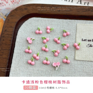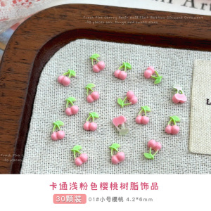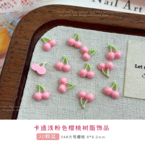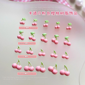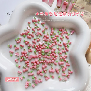 粉色樱桃美甲饰品立体卡通可爱少女风仿真樱桃diy穿戴指甲钻配饰
