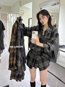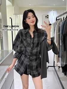 【高品质订货】都市周末 | 复古设计感磨毛格纹长袖衬衫(配腰带)