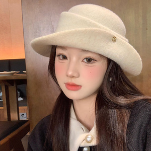 韩国绒法式赫本风优雅白色礼帽女千金风大头围复古显脸小渔夫帽子