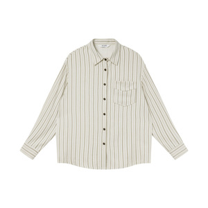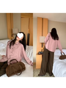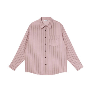你好卡农 韩系雾面感条纹衬衫女春季新款宽松设计感长袖粉色衬衣
