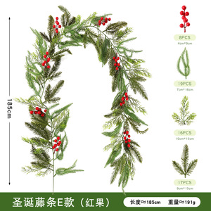 圣诞藤条亚马逊跨境热销仿真植物松针藤花环配件批发仿真圣诞藤条