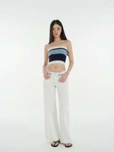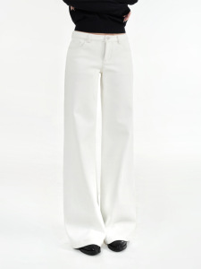 Jim Kennet中低腰直筒阔腿弹力白色牛仔裤