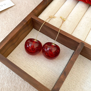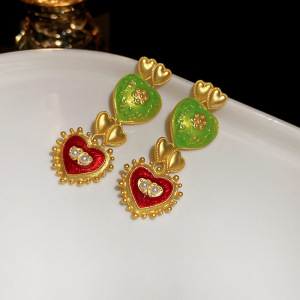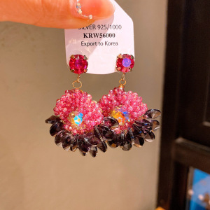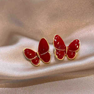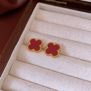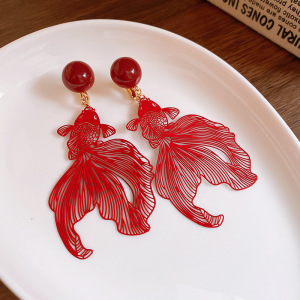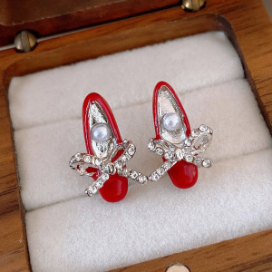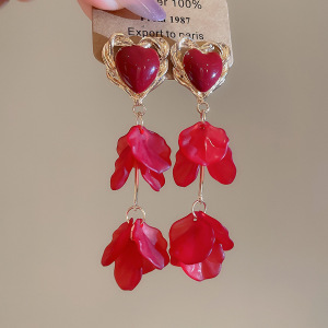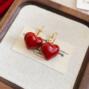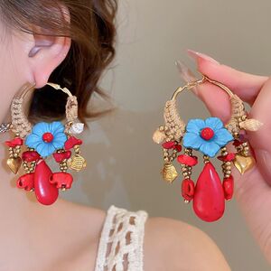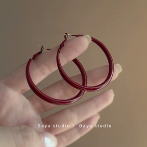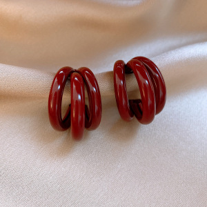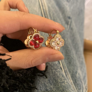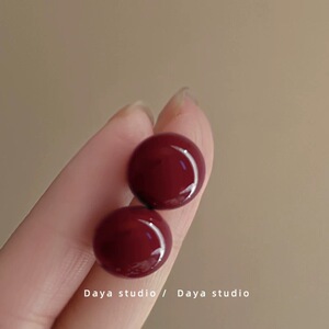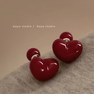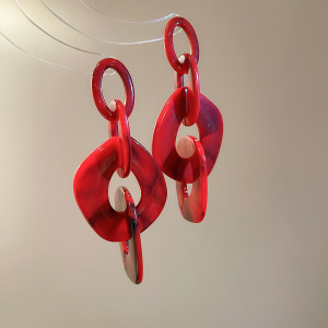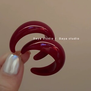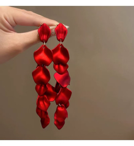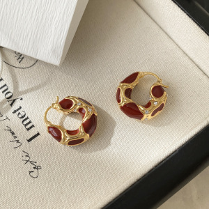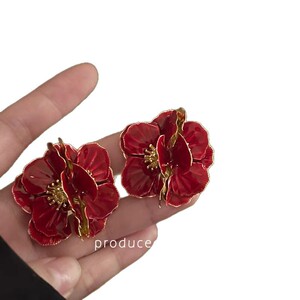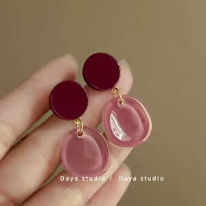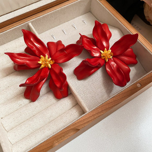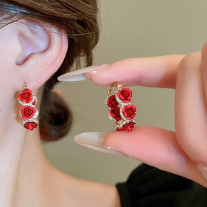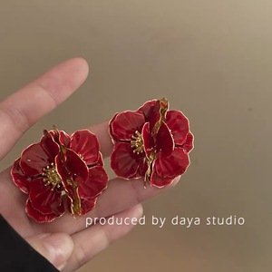 复古安可拉红几何花朵耳钉小众高级感耳环时尚个性气质百搭耳饰女