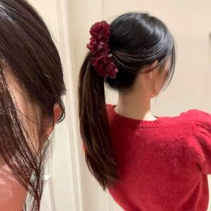 灼灼其华~气质红色花朵香蕉夹发夹女新娘发饰头花盘发马尾抓夹