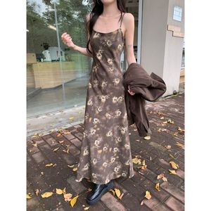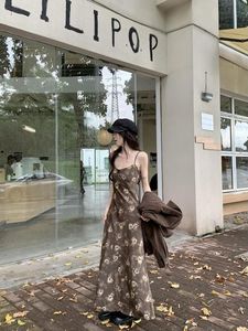 复古休闲百搭长袖外套法式碎花显瘦吊带连衣裙2025秋季新款套装女