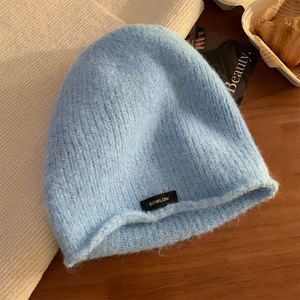 针织帽子女秋冬大头围冷帽韩系复古卷边堆堆帽显脸小护耳保暖羊毛
