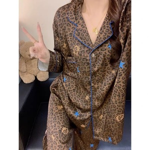 【豹纹小K】秋冬美拉德豹纹高级感咖啡色网红爆款长袖冰雪丝睡衣