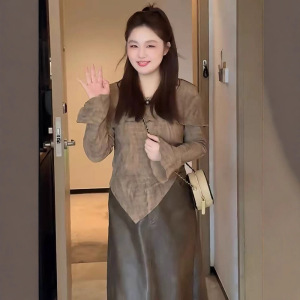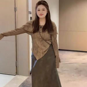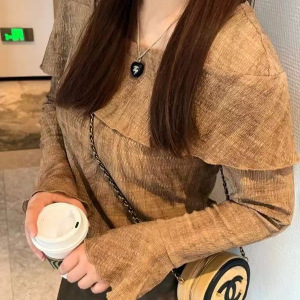 大码设计感不规则喇叭袖针织衫2025秋季新款显瘦内搭打底衫上衣