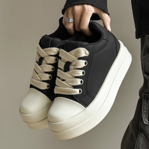 厚底皮面百搭8CM隐形内增高2025春秋季款百搭增高休闲板鞋面包潮