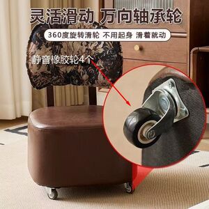 滑轮椅意式设计创意移动矮凳高背小凳人造皮软包风格木框架换鞋凳