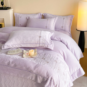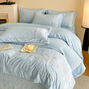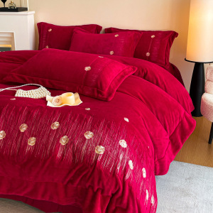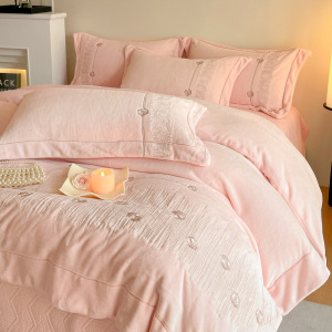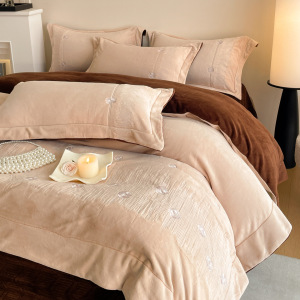 秋冬A类加厚牛奶绒四件套冬天保暖刺绣被套床单床盖保暖床上用品4