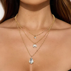 欧美时尚ins不规则水滴宝石项链 简约百搭轻奢多层叠戴毛衣链项饰