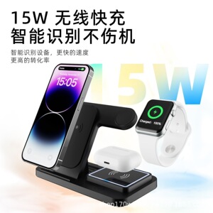 跨境三合一无线充电器折叠支架适用苹果华为无线快充手表耳机手机