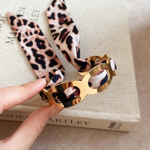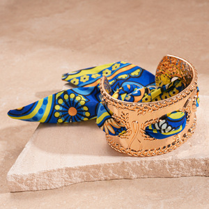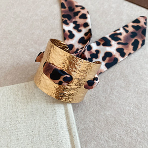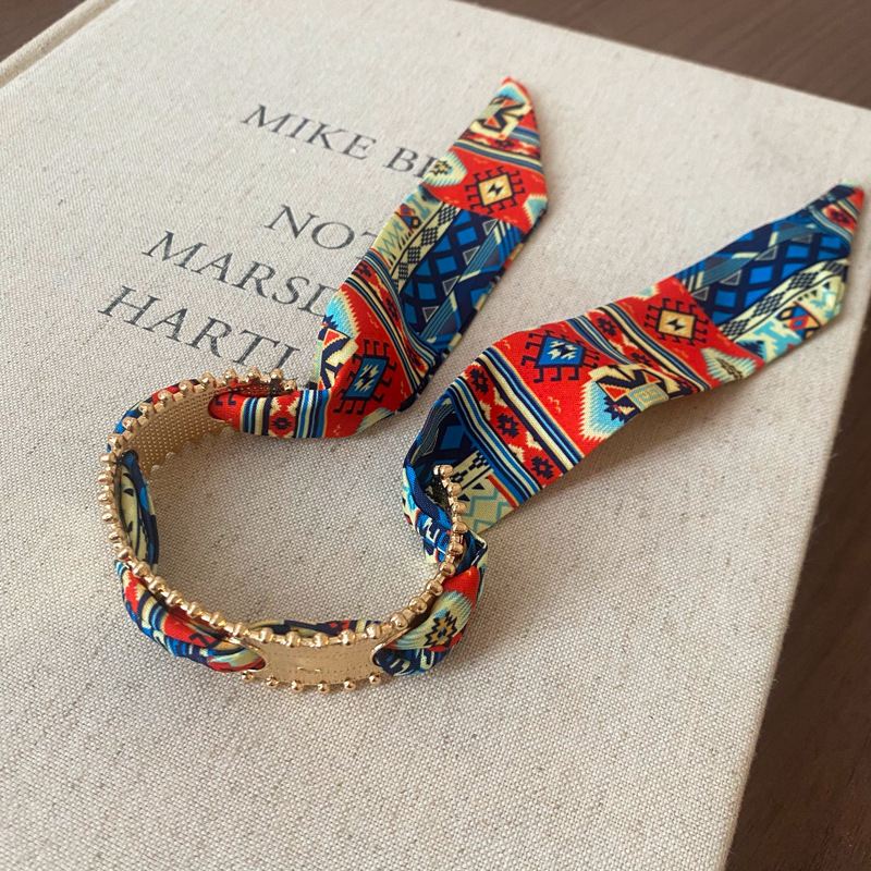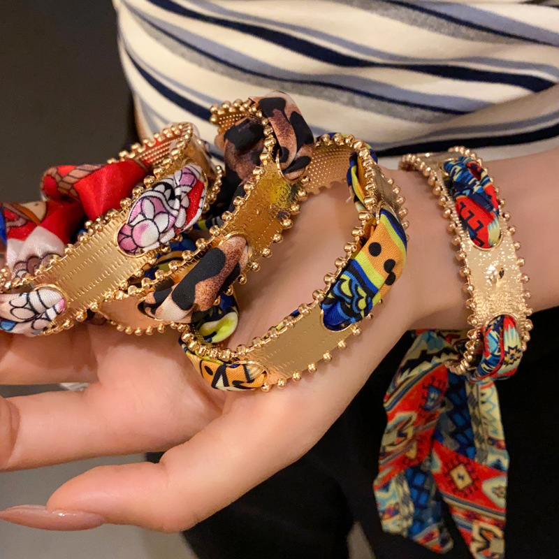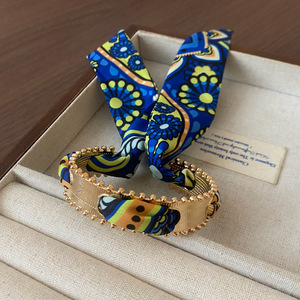 金属布艺丝巾印花几何开口手镯复古民族风小众手环轻奢高级感手饰