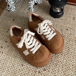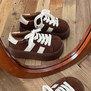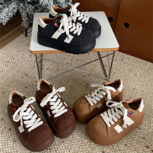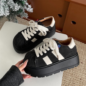 黑色复古厚底低帮休闲板鞋女款2025新款秋季增高阿甘运动德训鞋子