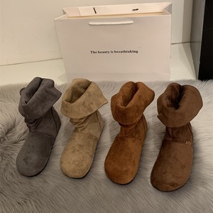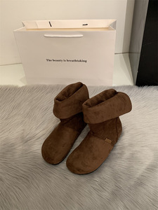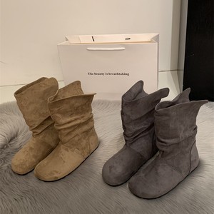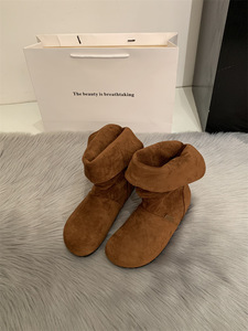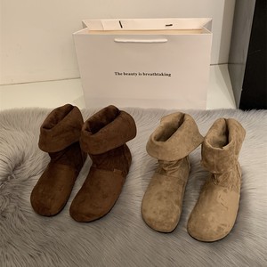 复古绒面翻折内增高勃肯短靴女新款韩系时装靴套筒马丁靴