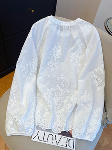 中国风刺绣花边斜盘扣圆领衬衫女2025早秋宽松设计感气质减龄小衫