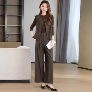 T988 秋季新款时髦洋气长袖打底衫马甲阔腿裤气质三件套LY
