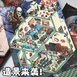 微恐系列微缩造景贴纸册 微恐立体造景贴画创意万圣节系列贴纸本