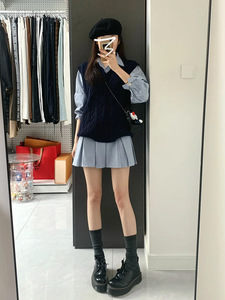 衬衫裙+马甲【套装】【搭配一整套韩系氛围感穿搭气质减龄微胖显瘦高级感超好看独特绝美清冷松弛感小香风套