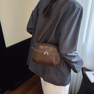 2025秋冬新款复古软皮枕头包女简约多层收纳单肩包通勤百搭斜挎包