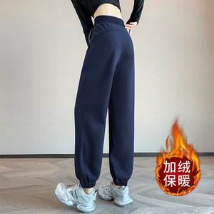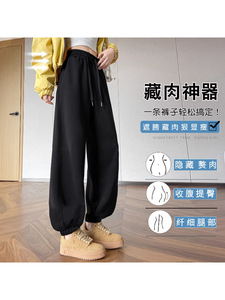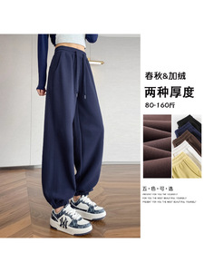 藏青色运动裤女春秋2025新款宽松显瘦束脚美式卫裤休闲高腰灯笼裤