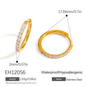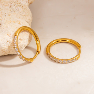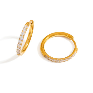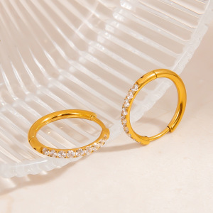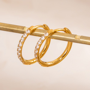 跨境不锈钢耳环复古风嵌钻圆圈线条耳饰ins风简约时尚镀18k金耳钉