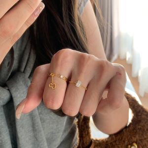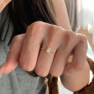 小红书爆款半圈链条香槟金葫芦戒指叠戴方钻素圈细款戒指一件代发