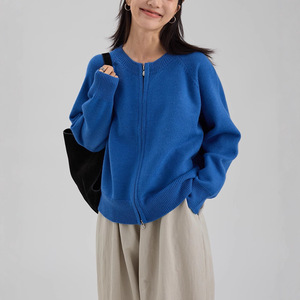 2025新款纯色双头拉链毛衣外套女秋休闲百搭针织开衫