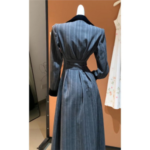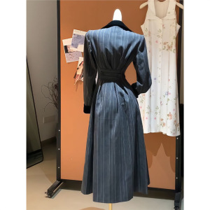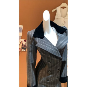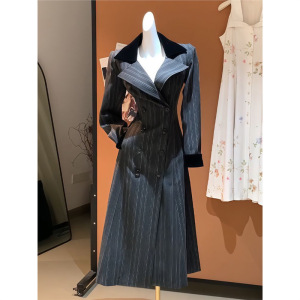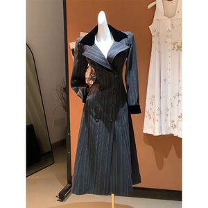 韩系高级感气质翻领排扣风衣外套女2025秋季新款条纹小众设计大衣