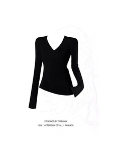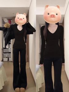 白色内搭修身V领长袖T恤女2025新款早秋紧身打底衫上衣女秋天穿搭