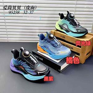 皮面儿童帅气运动鞋2025秋季新款旋转纽扣男童轻便跑步鞋