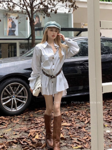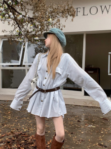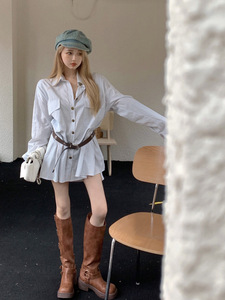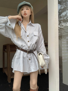 衬衫裙 配腰带