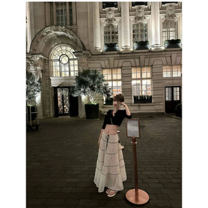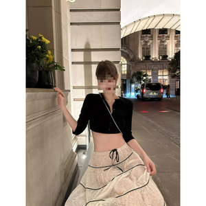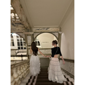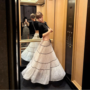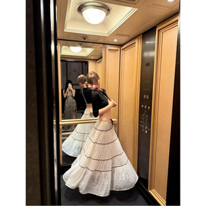 法式浪漫甜美蕾丝拼接半身裙女夏季新款时尚重工压褶显瘦长裙中弹