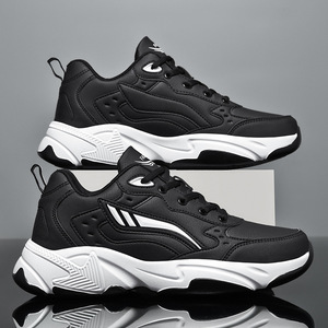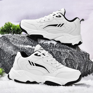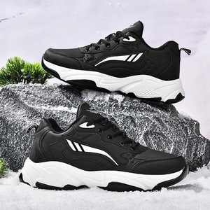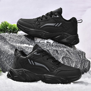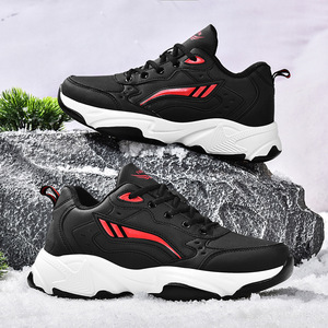 四季皮面防水运动鞋百搭青年跑步鞋防滑情侣休闲鞋子秋冬加绒男鞋