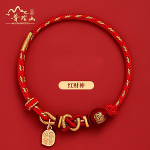 普陀山红绳手链五路财神蛇本命年手工编织绳生肖猪虎猴龙太岁手绳