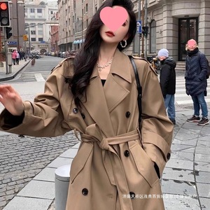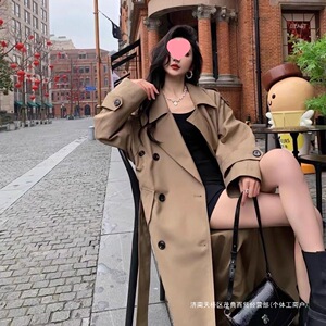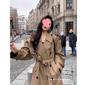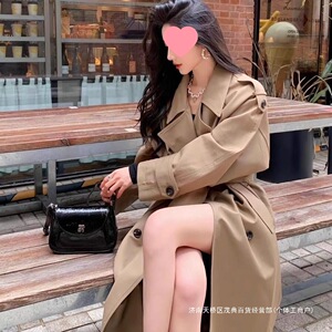 跨境风衣外套长款2025新款春秋小个子卡其色英伦加长休闲气质大衣