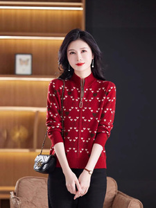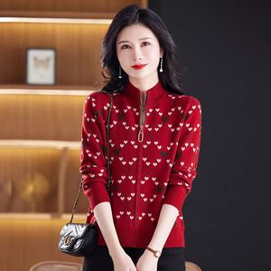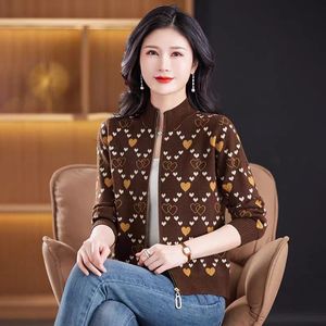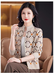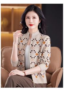羊绒开衫女2025新款妈妈秋装女士洋气毛衣外套女提花针织宽松上衣