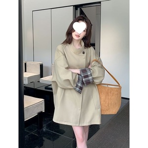 2025春季新款撞色风衣短外套女廓形感宽松显瘦百搭英伦风大衣