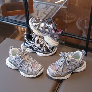 儿童蜘蛛网老爹鞋春秋新款男女童脏脏跑步鞋擦色做旧运动鞋亲子鞋
