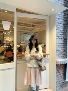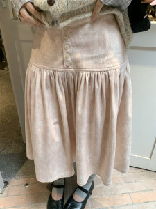 自留款秋冬温柔小众复古感纽扣设计显瘦百搭灯芯绒中裙粉色半身裙