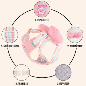 狗狗牵引绳蝴蝶结背心式宠物胸背带遛狗绳柴犬比熊泰迪狗链子涤纶