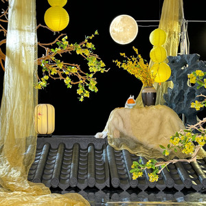 桂花枝树枝摄影材料中秋节汉服古风国风拍摄道具秋季假花树叶