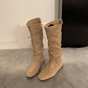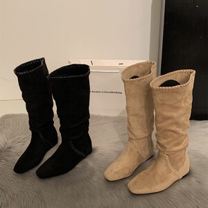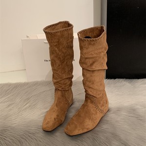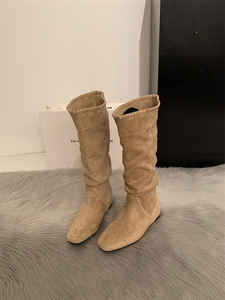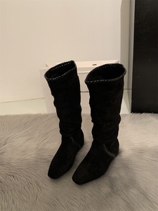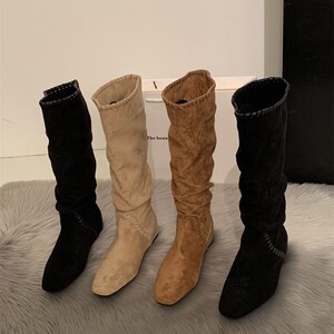 2025早秋超火绝美巨好看美拉德小个子内增高坡跟麂皮高筒堆堆长靴