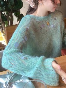 羊驼毛羊毛套头针织衫毛衣女2025早秋氛围感穿搭镂空上衣