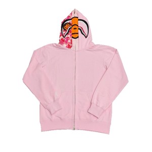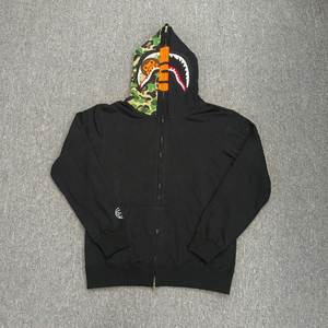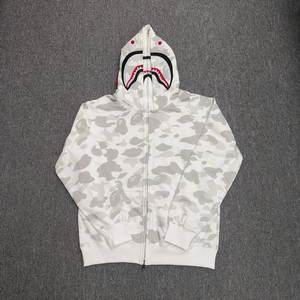 跨境批发代发外贸鲨鱼头双帽黑粉卫衣男女开衫拉链潮牌情侣外套