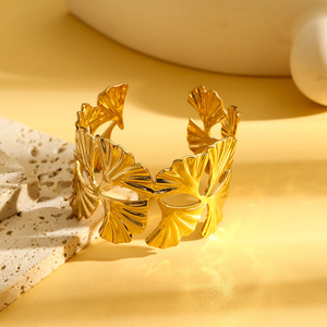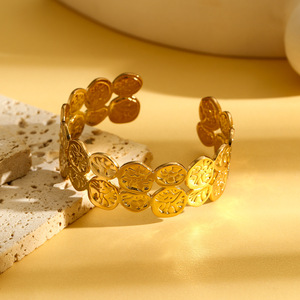 跨境欧美不规则几何拼接金属开口手镯熔岩风时尚个性水波纹设计