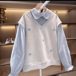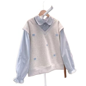 潮儿童休闲上衣韩版中大童韩系百搭假两件慵懒百搭蝴蝶结套头衫潮
